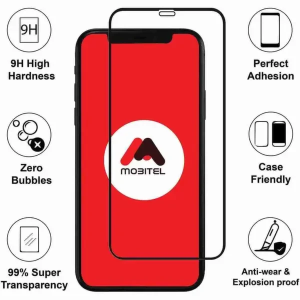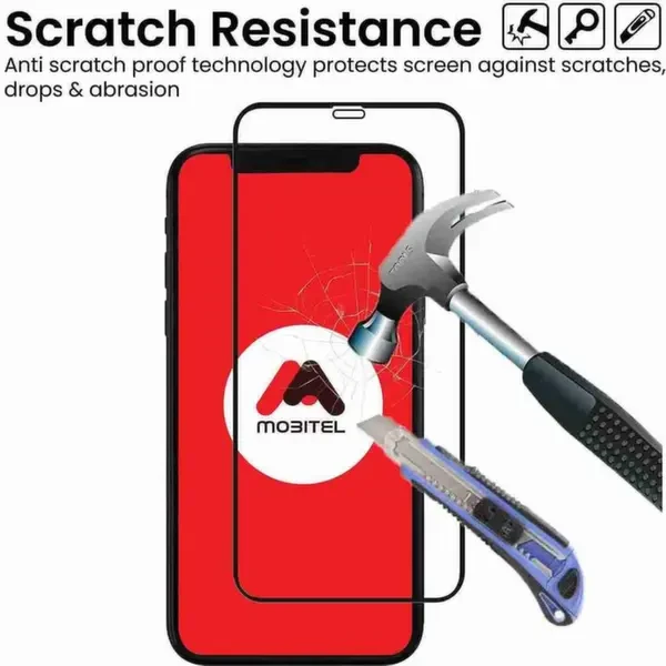 Mobitel's full-coverage tempered glass screen protector utilizes a multi-layer construction for enhanced protection. Each layer plays a specific role, from absorbing impact and resisting scratches to maintaining a clear, responsive touch experience. Enjoy the peace of mind that comes with a screen protector built to safeguard your phone from everyday hazards.