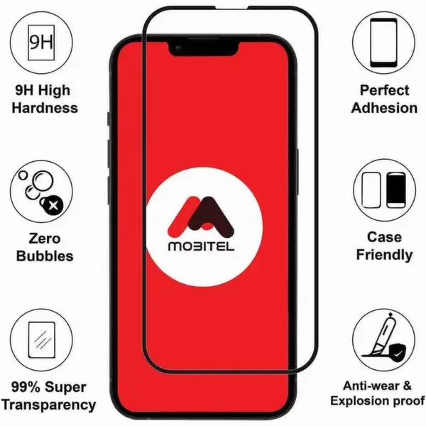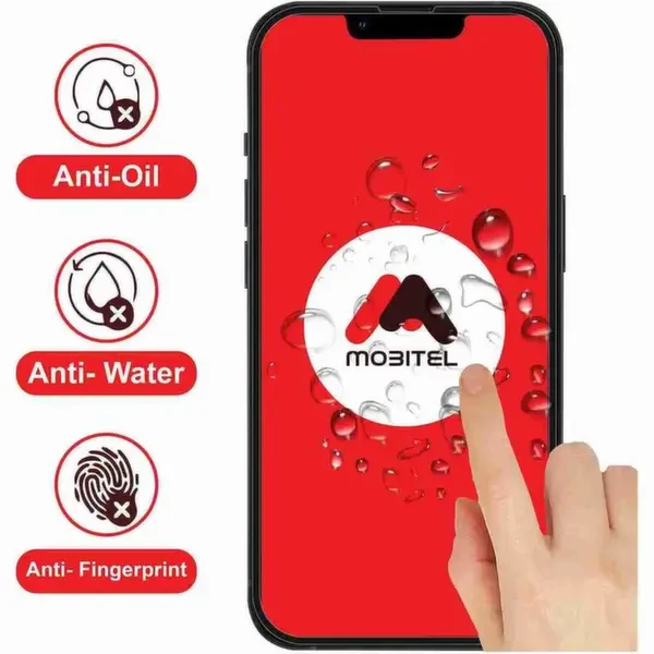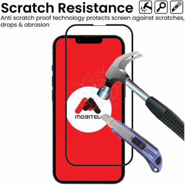 Mobitel's full-coverage tempered glass screen protector utilizes a multi-layer construction for enhanced protection. Each layer plays a specific role, from absorbing impact and resisting scratches to maintaining a clear, responsive touch experience. Enjoy the peace of mind that comes with a screen protector built to safeguard your phone from everyday hazards.