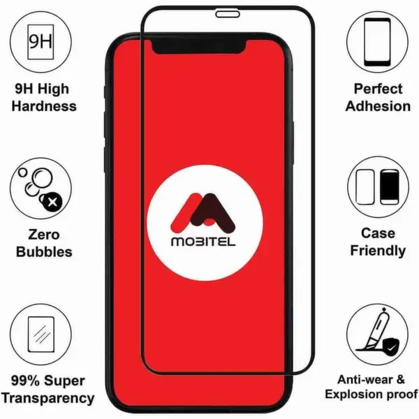 Mobitel's full-coverage tempered glass screen protector utilizes a multi-layer construction for enhanced protection. Each layer plays a specific role, from absorbing impact and resisting scratches to maintaining a clear, responsive touch experience. Enjoy the peace of mind that comes with a screen protector built to safeguard your phone from everyday hazards.