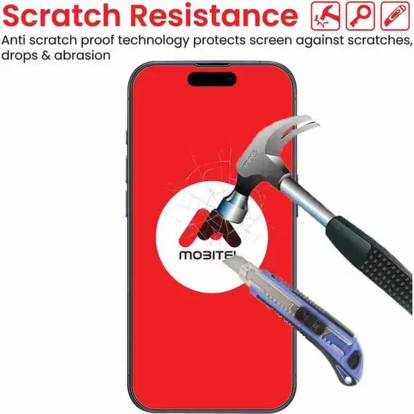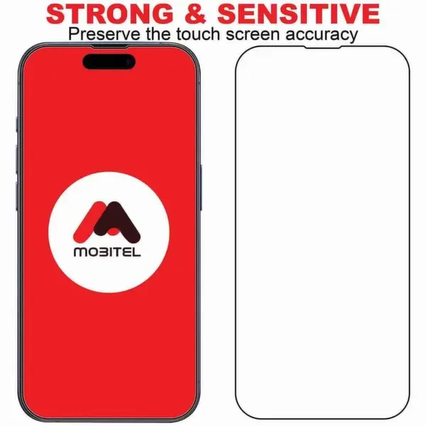 Mobitel's full-coverage tempered glass screen protector utilizes a multi-layer construction for enhanced protection. Each layer plays a specific role, from absorbing impact and resisting scratches to maintaining a clear, responsive touch experience. Enjoy the peace of mind that comes with a screen protector built to safeguard your phone from everyday hazards.