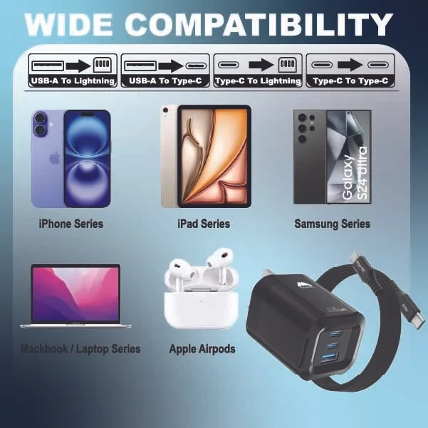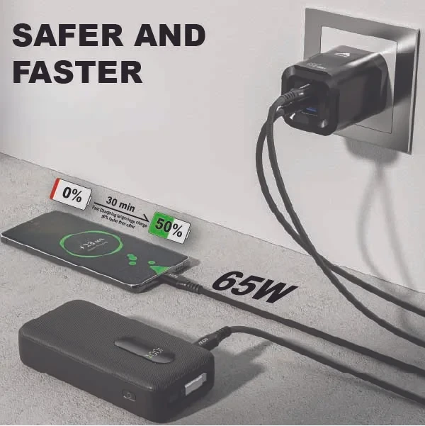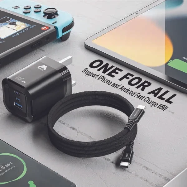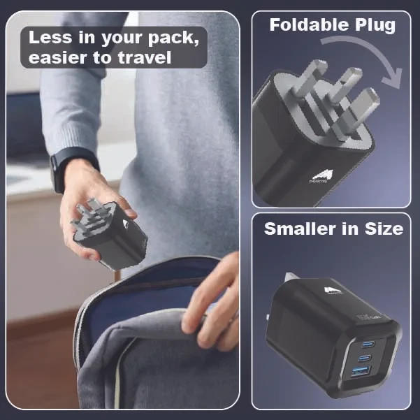 | Features | Foldable, 3-Ports, 65W Fast Charging, Portable, Easy to Carry, Free 60W USB-C Cable |