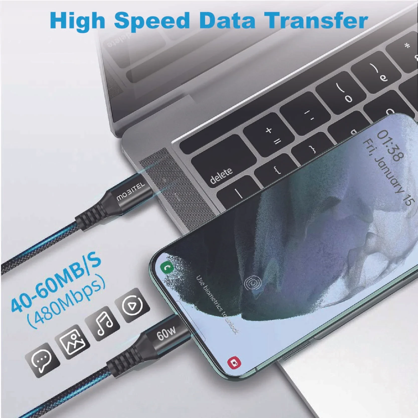 • High-Speed Data Transfer: Achieves data speeds up to 480 Mb/s, exceeding standard USB-C cables.