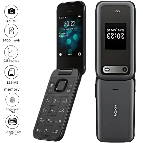 Elegant Flip Design: The Nokia 2660 Flip features a timeless flip phone design that is both compact and durable. Its sturdy hinge ensures longevity, while the flip mechanism adds an element of nostalgia and protects the screen.