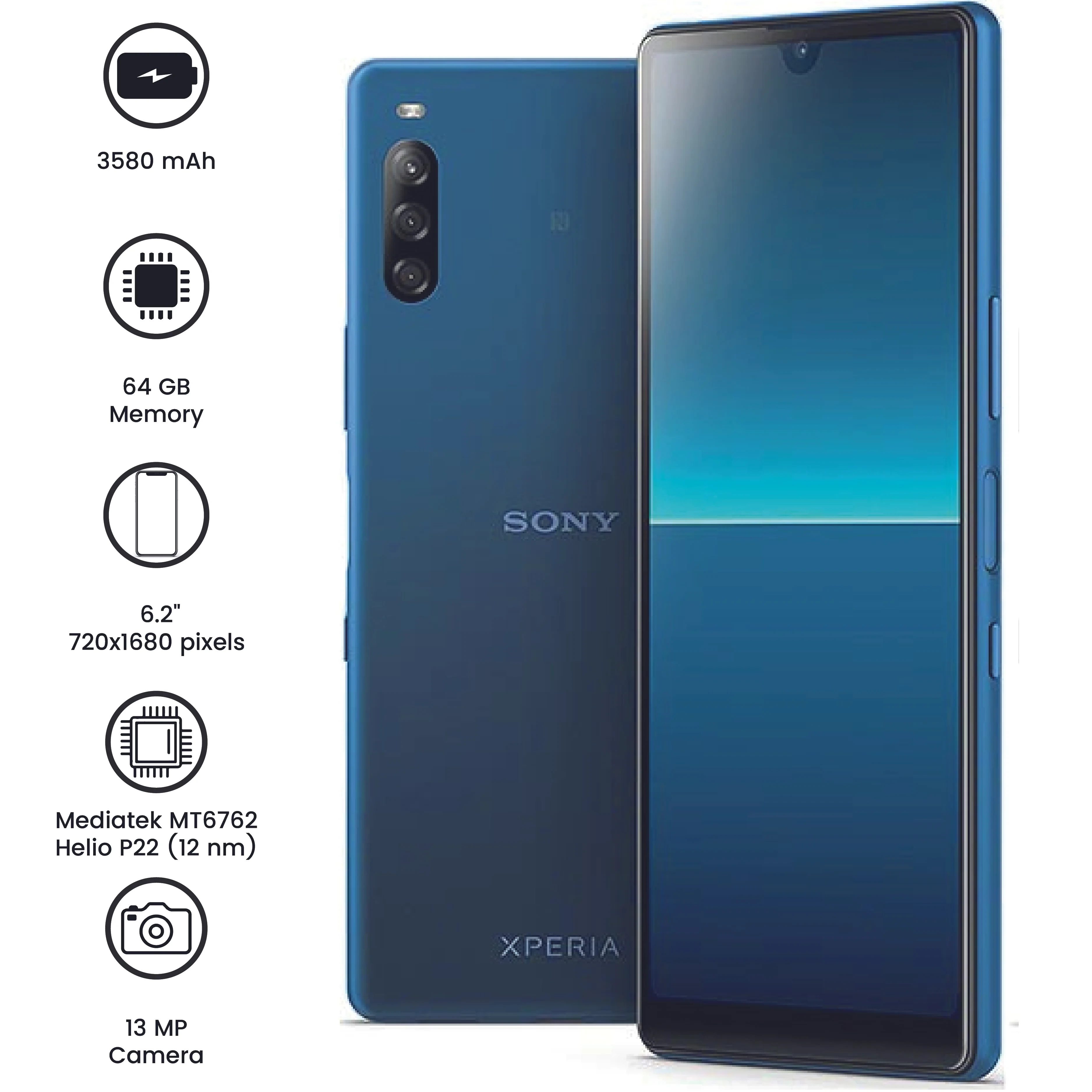 • Display: 6.2-inch screen with 720x1680 resolution for clear visuals
