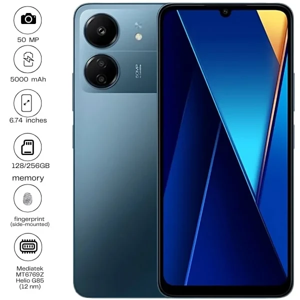 The Xiaomi Poco C65 is an entry-level smartphone designed to offer great value. It features a large 6.5-inch HD+ display for a wide and clear viewing experience. Powered by a reliable processor, the Poco C65 offers smooth performance for everyday tasks. The phone is equipped with a dual-camera setup, including a 13MP primary camera, for decent photography. With a sizable battery, it ensures all-day usage. Running on a user-friendly interface, the Poco C65 provides essential features at an affordable price.